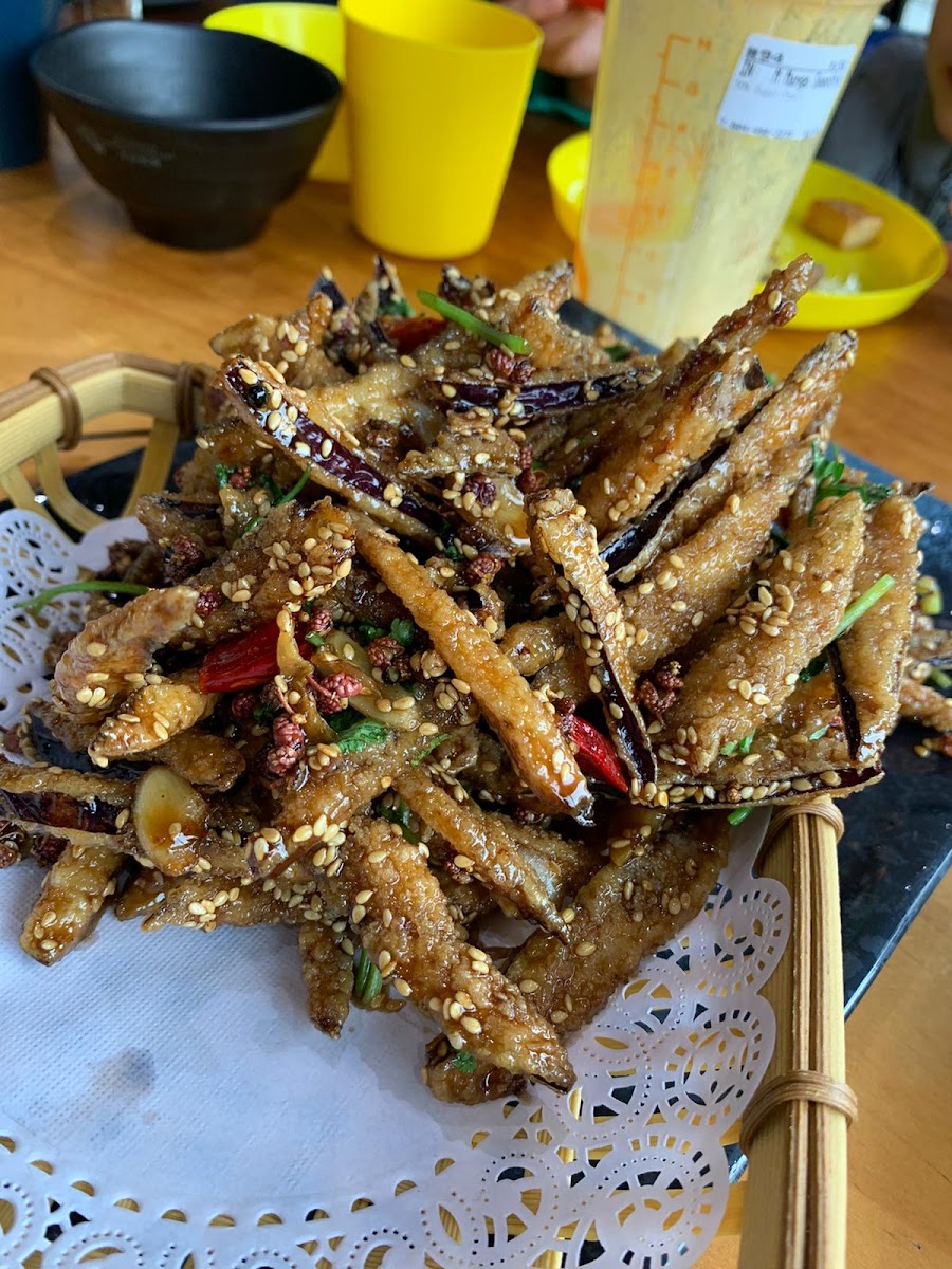 The menu offers a broad range of options that cater to a palate looking for variety and depth—traditional lamb skewers (传统羊肉串) are a standout, alongside grilled oysters and crisply charred eggplant. The restaurant also features cold dishes and spicy selections like their beef noodle soup (麻辣牛肉面), which balance the smoky richness of the BBQ well. One practical note: skewers usually come in sets of five, so it’s a spot best approached with a group or a hearty appetite in mind.