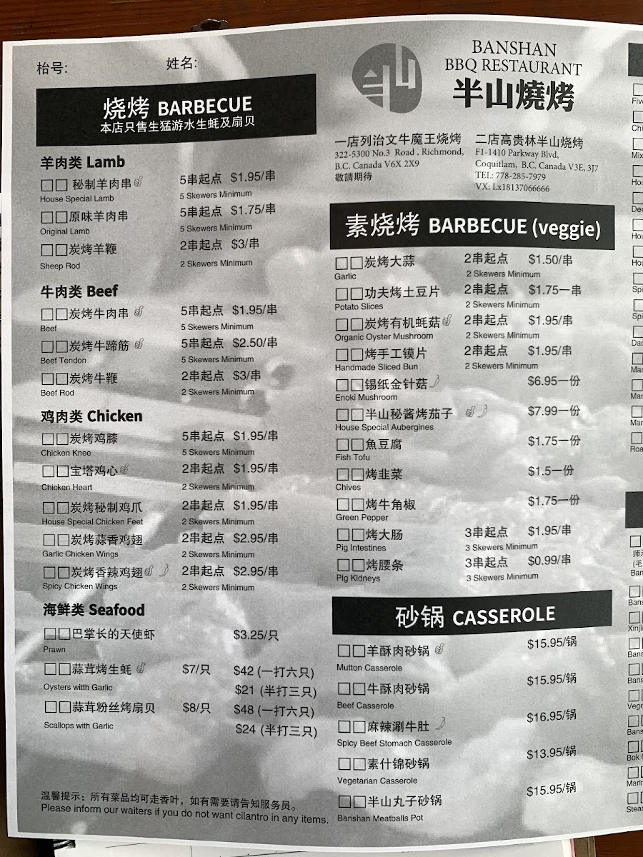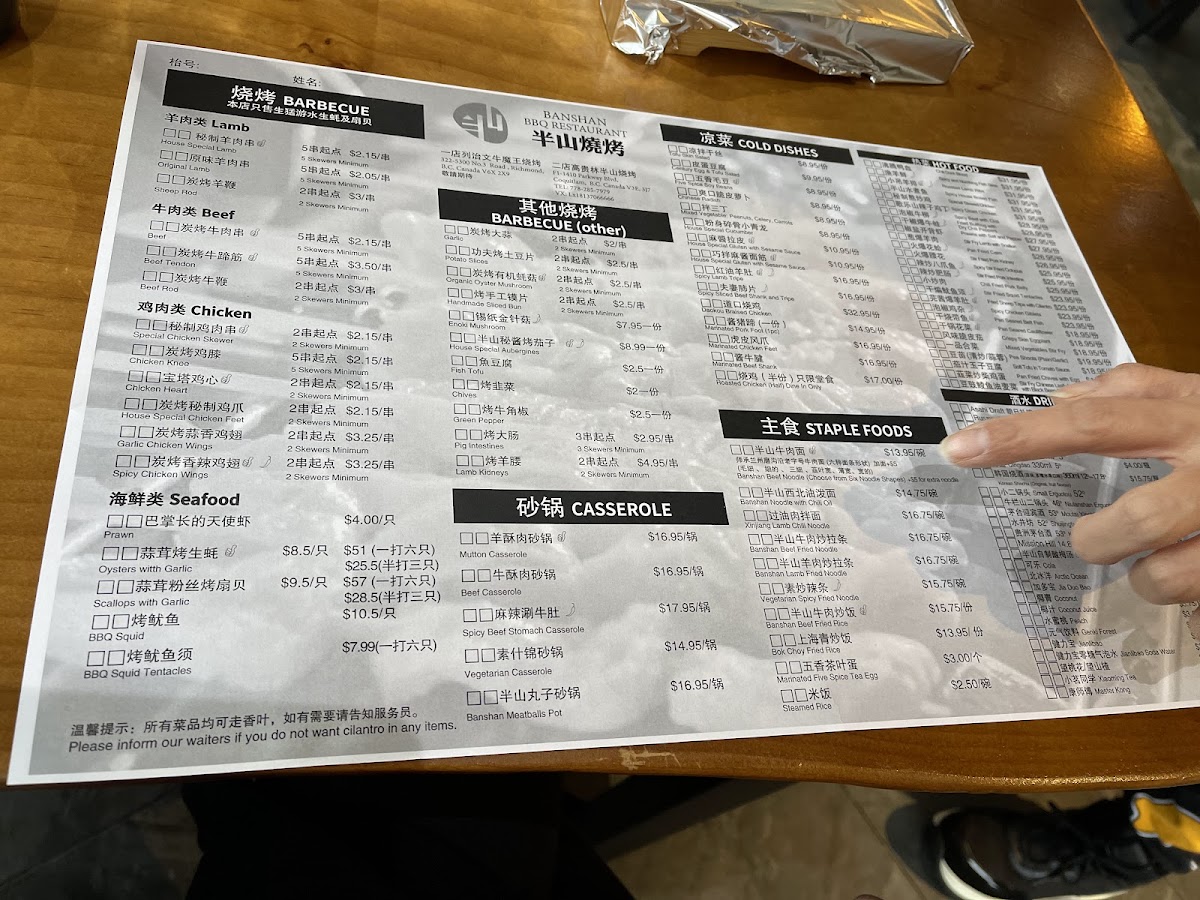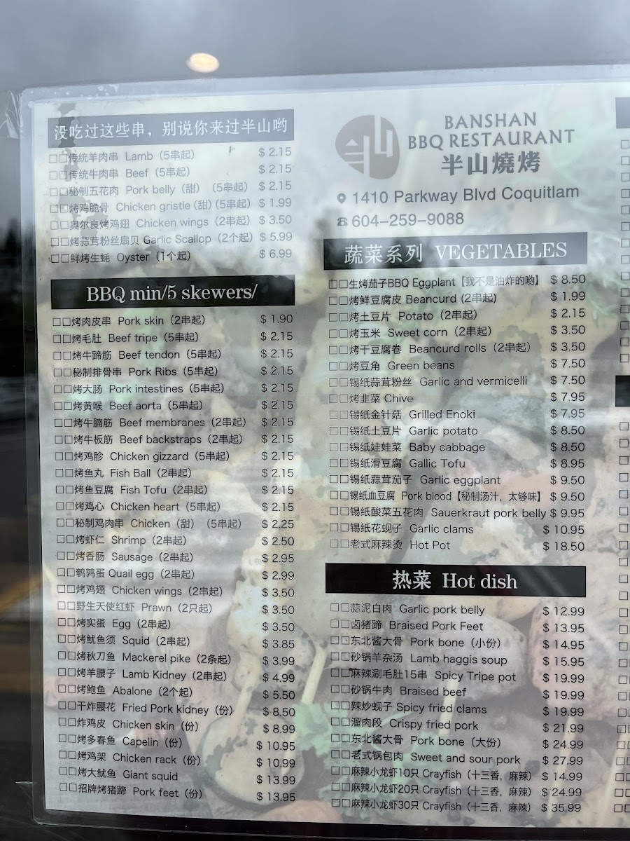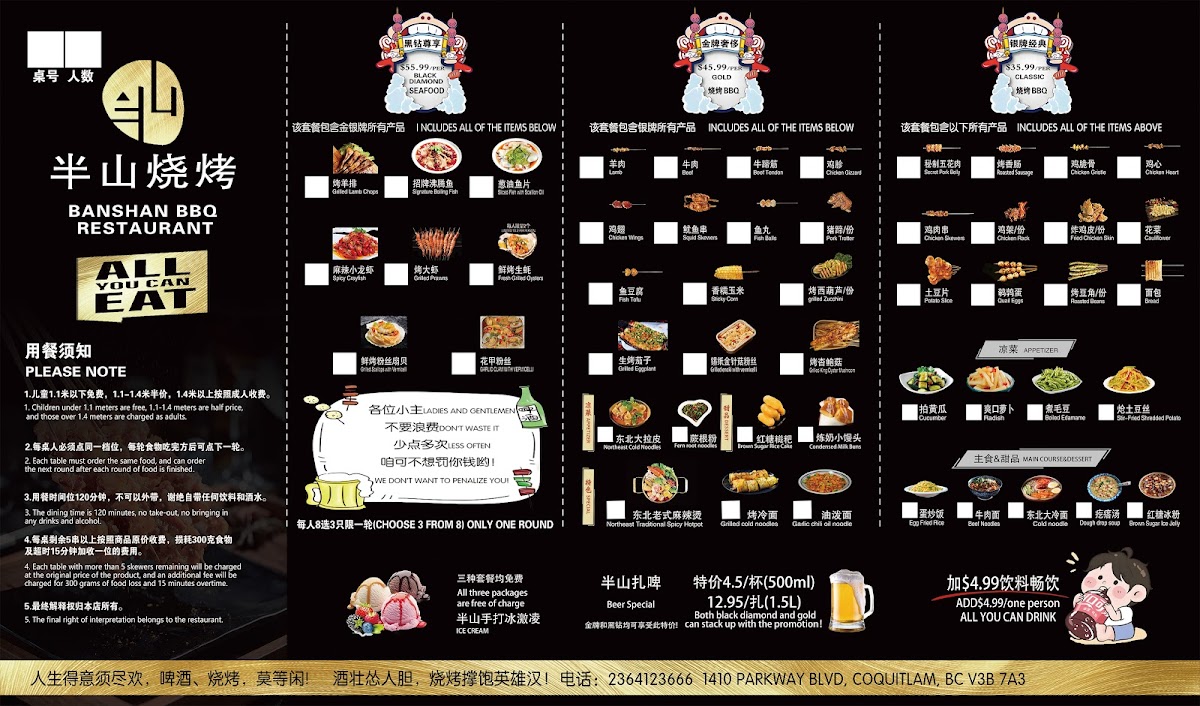 Banshan bbq restaurant( All You Can Eat!!!) Menu
